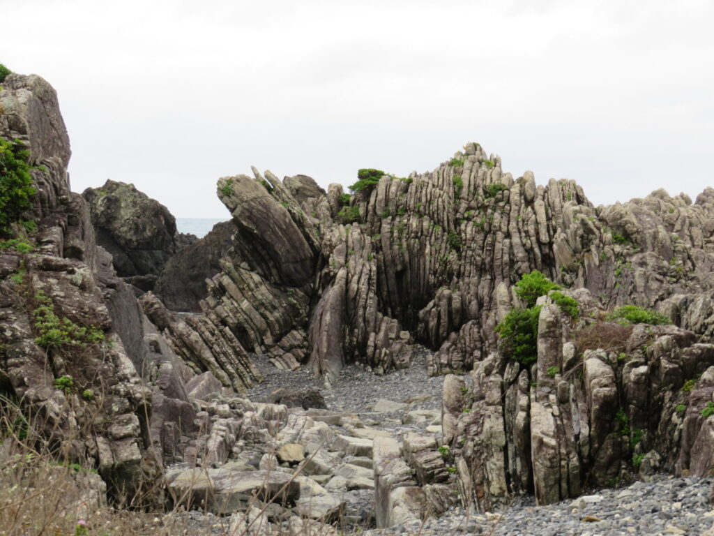 地殻変動や荒波による浸食によってできた岩が多くありました。