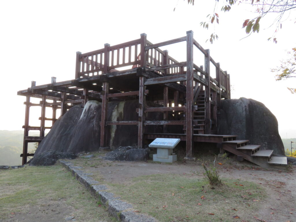 写真のように大きな一枚岩があり、そこには「天守」が建っていたそうです。