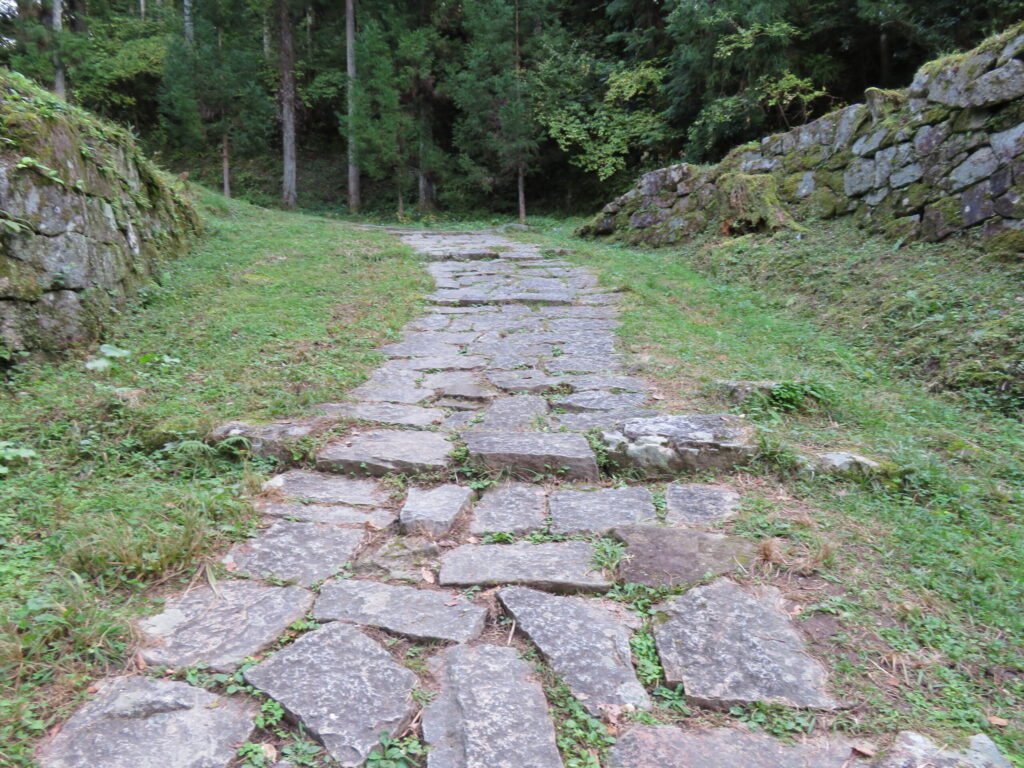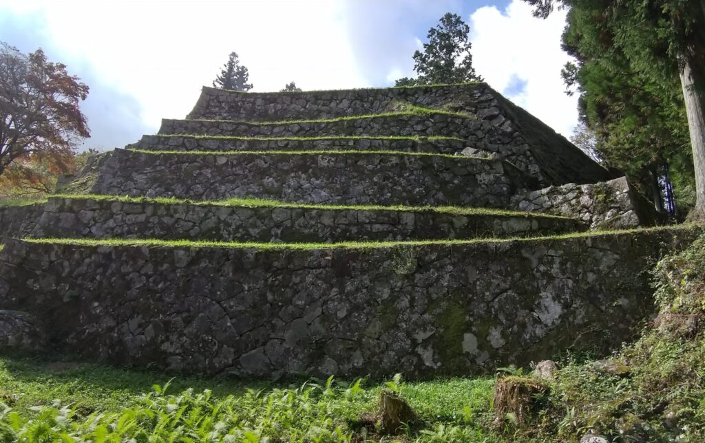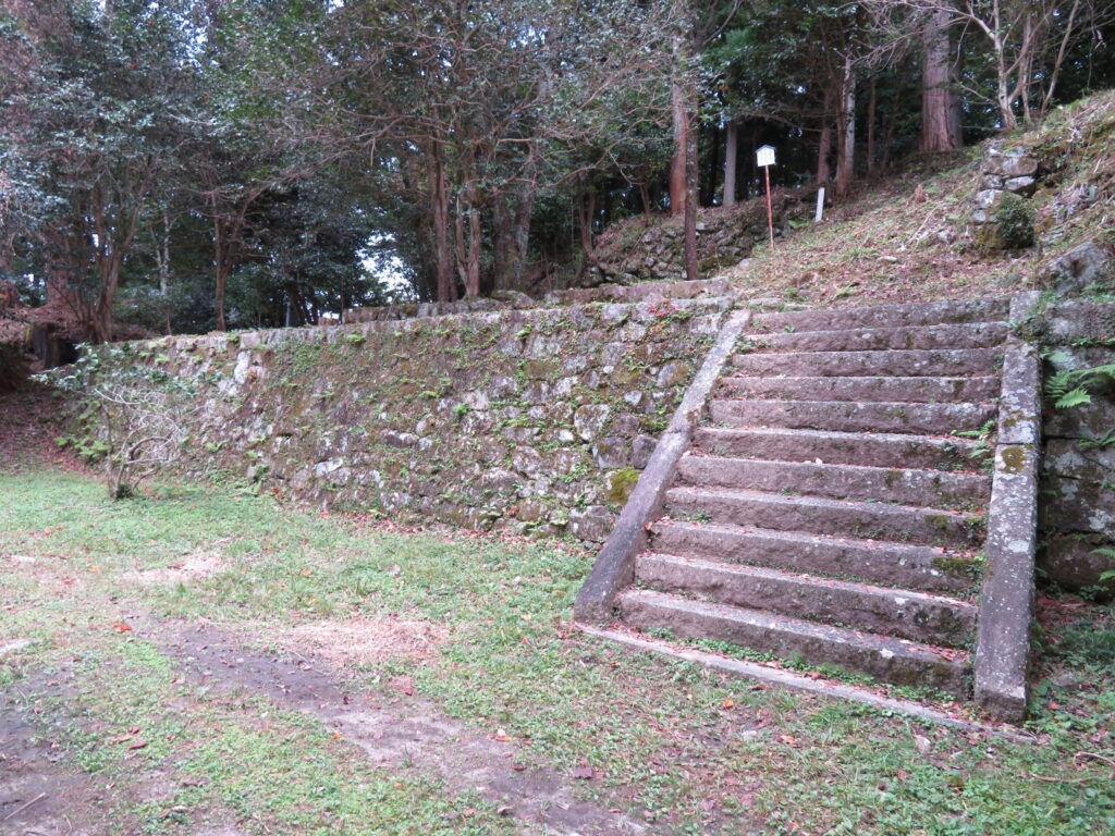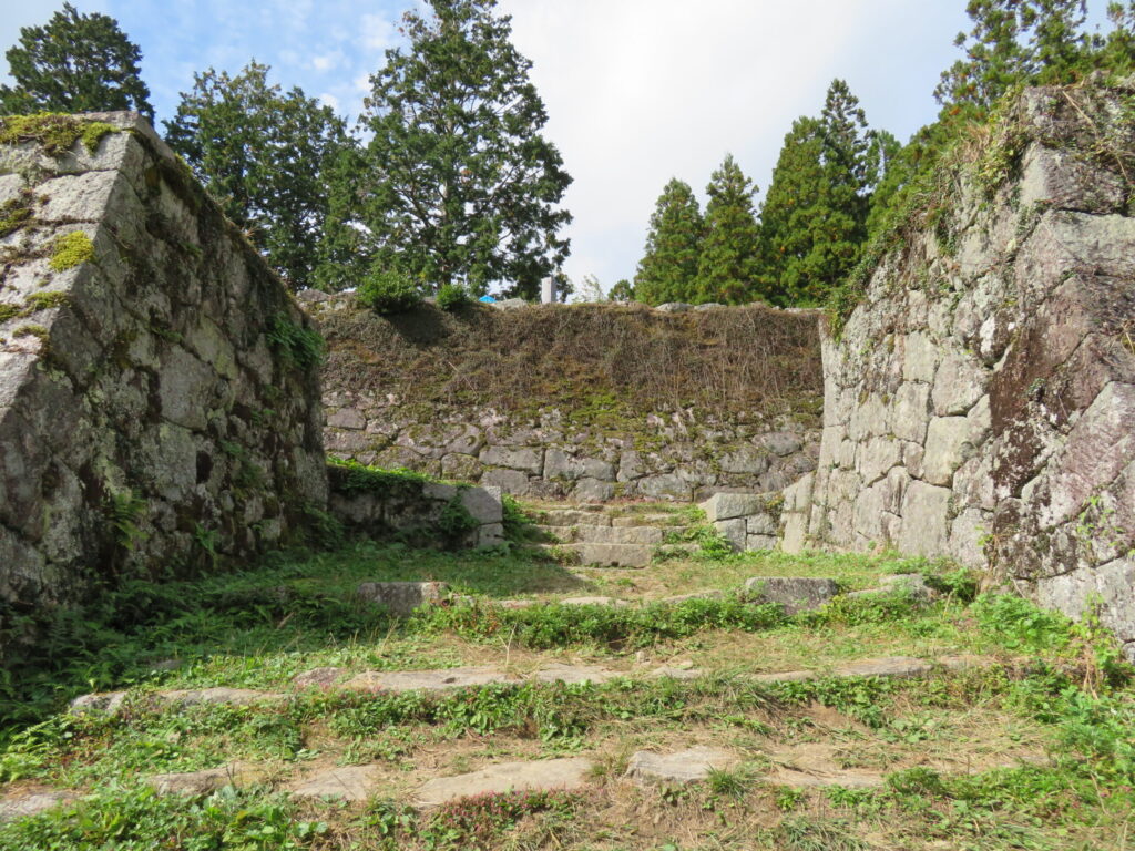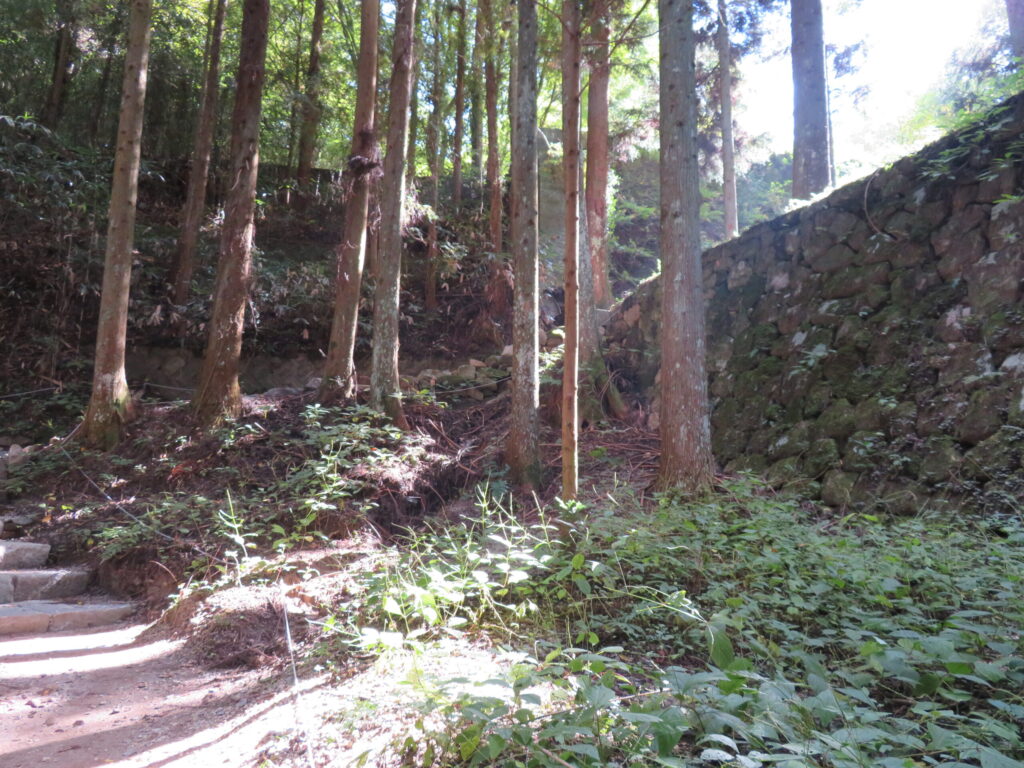 「八幡曲輪跡」を去り少し歩いて行くと「六段壁」と呼ばれる石垣が見えてきました。
