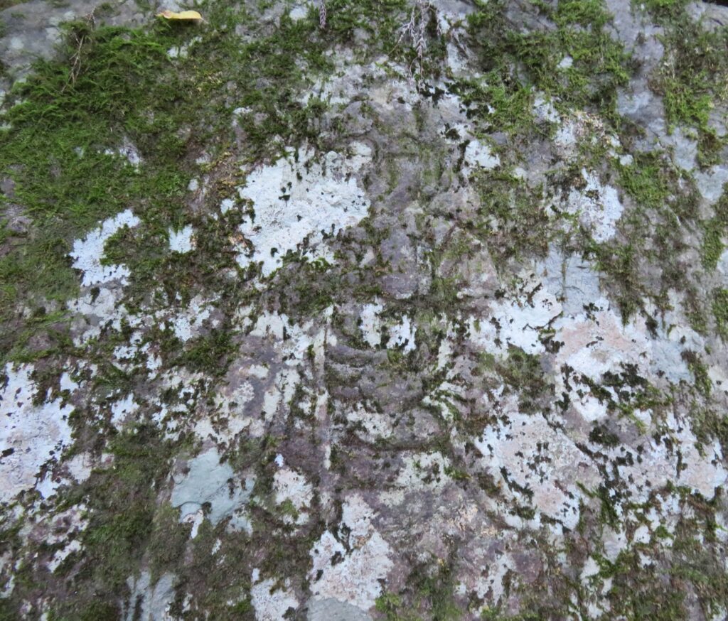 途中の登山道に苔の生えた岩があり、よく見てみると「地蔵菩薩」が描かれていました。