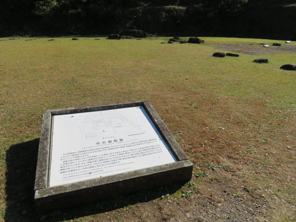引き返した後、そのまま麓に降りて散策していると「中の御殿跡」がありました。