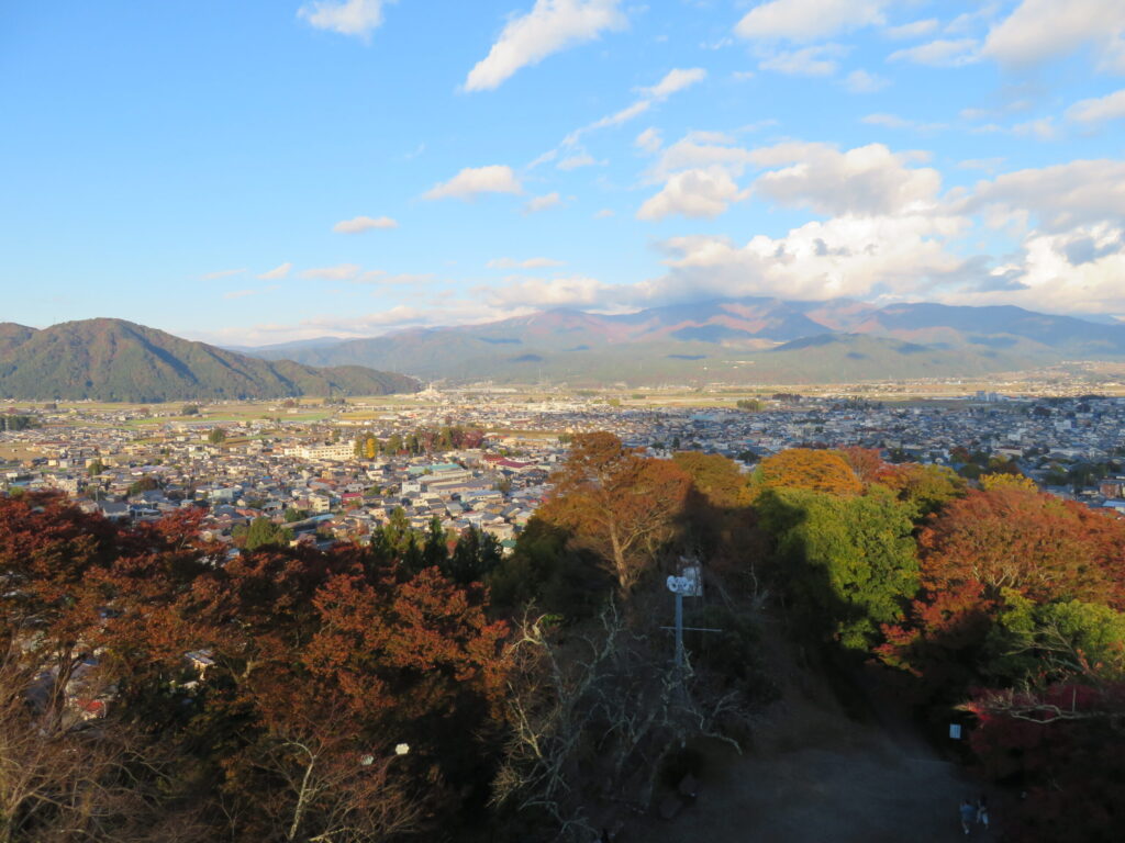 大野市内を見渡すことができ、夕方だったのもあり紅葉も赤々として綺麗でした。