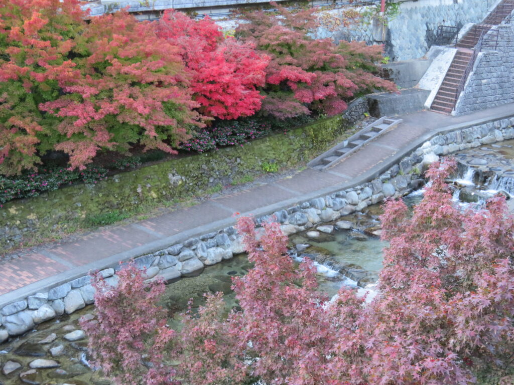 先ほどの場所から下のほうを覗いてみると、綺麗に整備された河川がありました。
