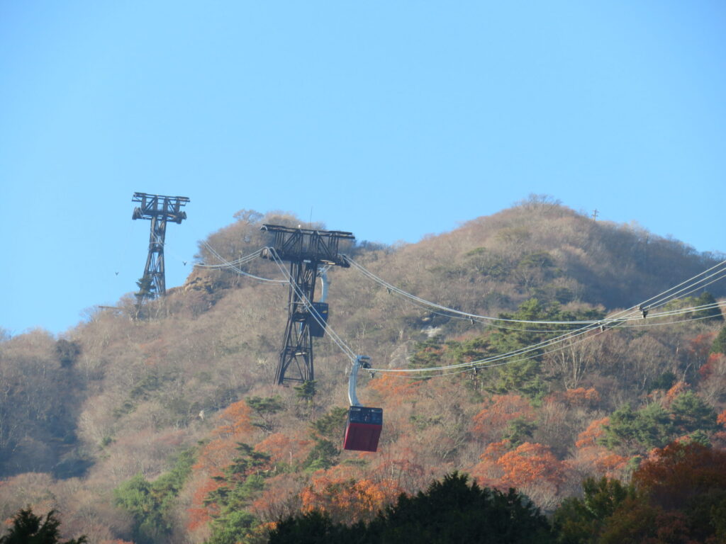 今回はカメラで拡大してロープウェイを撮影しました。