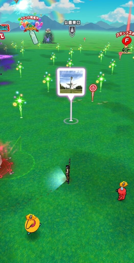 その為、公園内にはイベントに関する像や自販機、そして、カンダタが居ました。